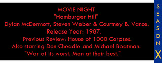 My father shaped my experiences in watching film by the rows of films that were on the shelf collected by him while I grew up as a child. There was a small but significant portion of films that dealt with war in some way, which likely made sense with his service in Vietnam (he did not talk about it much, but the point remains). One of those films that stood firm was Hamburger Hill (1987). Time and time again one needs to look on a war film to see what seems familiar and what seems different from a depiction of a war, whether that means films made during the war itself (like The Green Berets (1968)) or ones made about the war years later (with or without a filmmaker with some war experience involved somewhere). Hamburger Hill came out in the run of the 1980s that depicted the war (with root from real life events or experiences) that ranged from Platoon (1986) to Casualties of War (1989). This was the sixth feature film from John Irvin, who apart from starting his work in television (with his most famous production being the miniseries Tinker Tailor Soldier Spy) had done work in Vietnam in documentary filmmaking. The film was written by James Carabatsos (who also served as a co-producer), with this being the third of his six theatrical film efforts revolving around the war (the other two being Heroes (1977) and Heartbreak Ridge (1986)), as he had served in the 1st Air Cavalry Division in 1968; he did years of research in interviews with people of the conflict that took place over "Hill 937" from May 10-20 that is generally referred to as the Battle of Hamburger Hill.